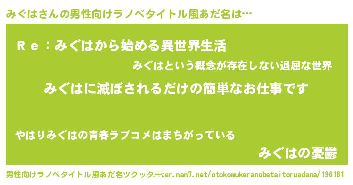 | ヘコむあだ名 | 『みぐにゅー』『みぐは(遠い目)』 |