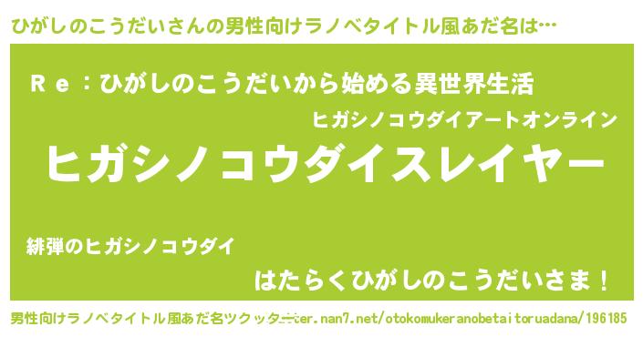 | 料理風あだ名 | 『ひがしのこうだいごはん』 |