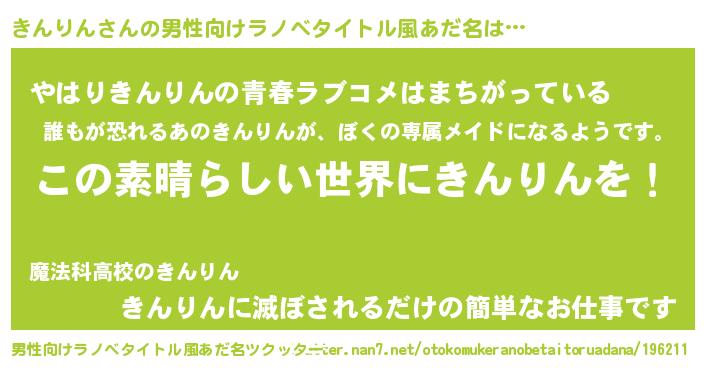 | 意味不明あだ名 | 『住所不定無職きんりん(98歳)』 |