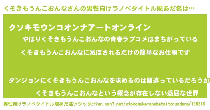 | 胡散臭い通販商品みたいなあだ名 | 『億万長者になれるブレスレット…その名も「くそきもうんこおんな」』 |