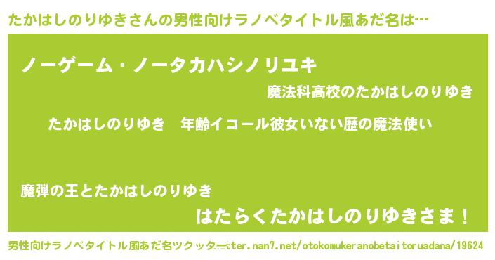 | 女子向けラノベタイトル風あだ名 | 『たかはしのりゆきの玉の輿計画!』 |