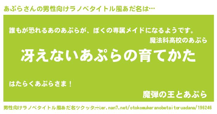 | 意味不明あだ名 | 『永久保存あぷら』『自称あぷら』 |