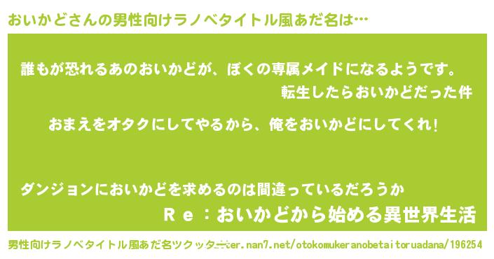| ヒーロー風カッコイイあだ名 | 『愛の使者おいかど』『ネオオイカド』 |