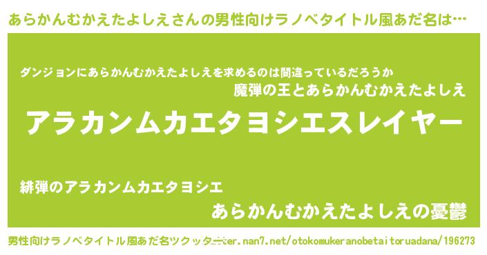 | 欧米人風あだ名 | 『トリンドルあらかんむかえたよしえ』 |
