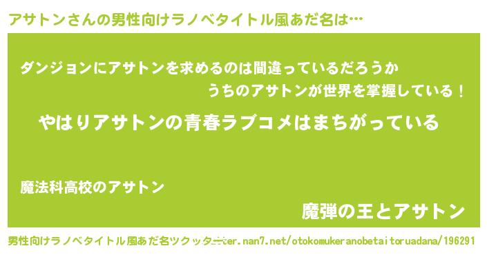 | 女子向けラノベタイトル風あだ名 | 『アサトンの雑貨屋さん』 |