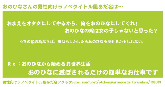 | 女子向けラノベタイトル風あだ名 | 『おのひなの婚約者』『闇のおのひな』 |