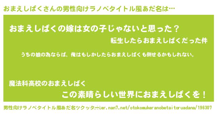 | 胡散臭い通販商品みたいなあだ名 | 『運命の人と巡り会える高級そうな壺…その名も「おまえしばく」』 |