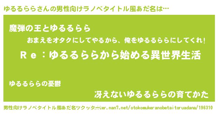 | 意味不明あだ名 | 『自称ゆるるらら』『ペロリンゆるるらら』 |