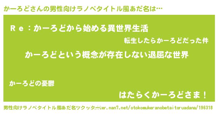 | ヘコむあだ名 | 『かーろど(笑)』『かーにー』 |