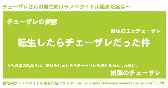 | 女子向けラノベタイトル風あだ名 | 『チェーザレの玉の輿計画!』 |