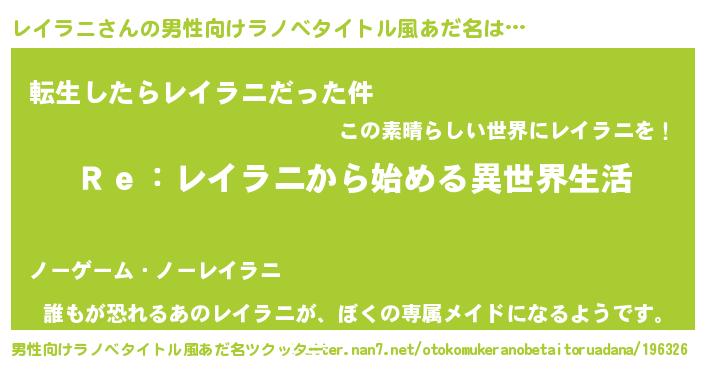 | ヘコむあだ名 | 『レイラニ(笑)』『レイにー』 |