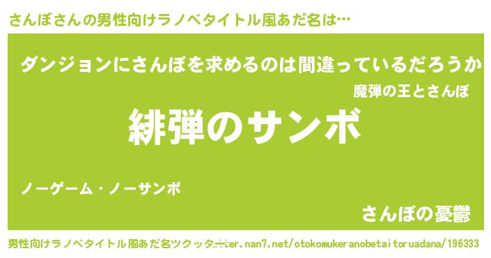 | 萌えアニメ | 主人公(さんぼ)のあだ名『 さんてゅん』 |