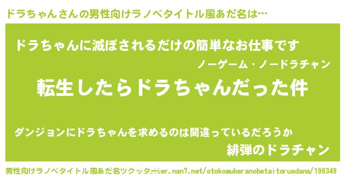 ドラちゃんさんの男性向けラノベタイトル風あだ名をツクッター!