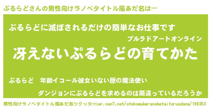 | 胡散臭い通販商品みたいなあだ名 | 『伝統あるサプリメント…その名も「ぷるらど」』 |