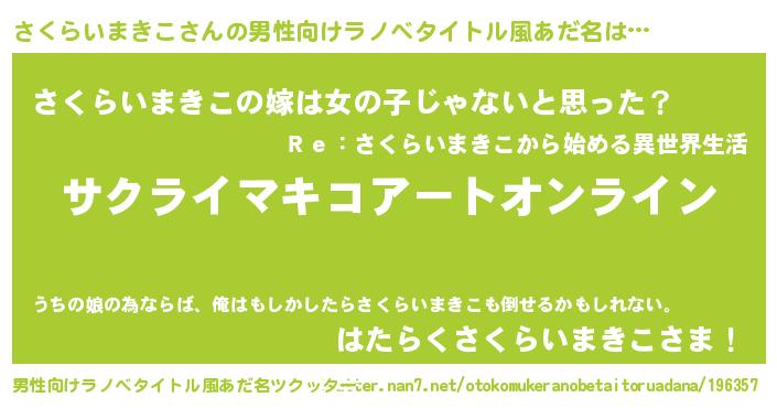| 欧米人風あだ名 | 『マイケルさくらいまきこ』 |