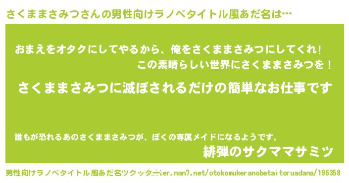 | ヘコむあだ名 | 『さくままさみつ(笑)』『さくっふぃ~』 |