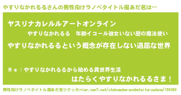 | 意味不明あだ名 | 『永久保存やすりなかれるる』 |