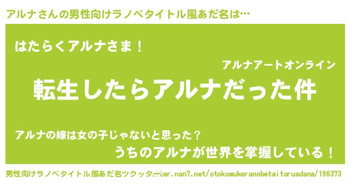 アルナさんの男性向けラノベタイトル風あだ名をツクッター!