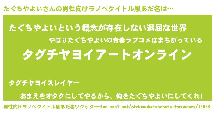 | 胡散臭い通販商品みたいなあだ名 | 『億万長者になれる水晶球…その名も「たぐちやよい」』 |