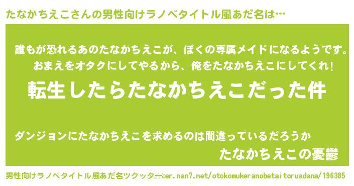 | ヒーロー風カッコイイあだ名 | 『ネオタナカチエコ』『魔戒騎士タナ』 |