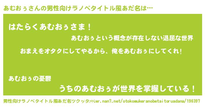 | ヒーロー風カッコイイあだ名 | 『正義の使者あむおぅ』『ネオアムオゥ』 |