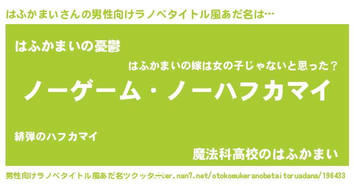 | 女子向けラノベタイトル風あだ名 | 『はふかまい恋絵巻』 |