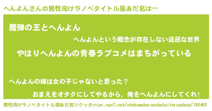 | 女子向けラノベタイトル風あだ名 | 『へんよんの雑貨屋さん』 |