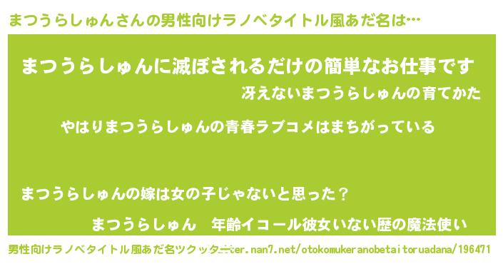 | 女子向けラノベタイトル風あだ名 | 『まつうらしゅんの雑貨屋さん』 |