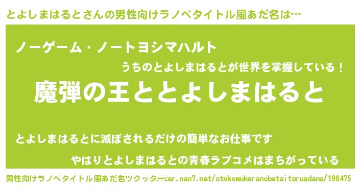 | 意味不明あだ名 | 『住所不定無職とよしまはると(53歳)』 |