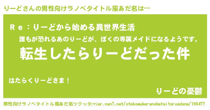 | 肩書あだ名 | 『りーど少尉』『りーど総統』 |