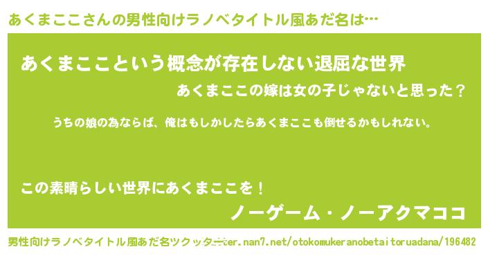 | 女子向けラノベタイトル風あだ名 | 『あくまここ伯爵の花嫁』 |