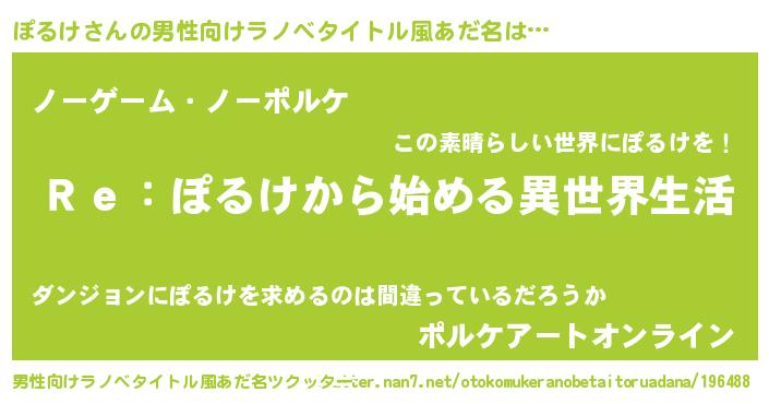 | 女子向けラノベタイトル風あだ名 | 『ぽるけストレイドッグス』 |