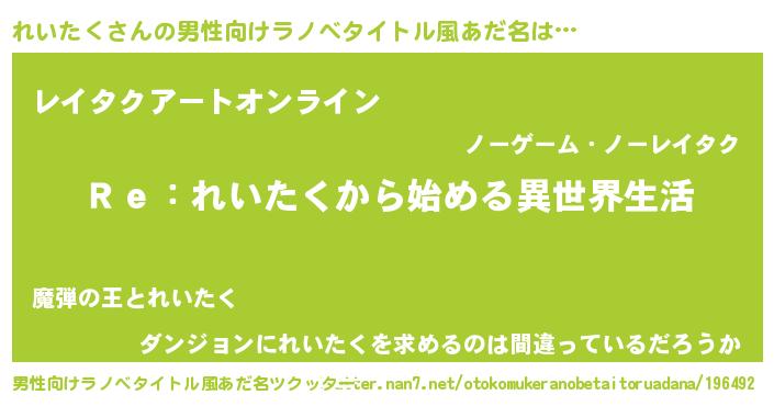 れいたくさんの男性向けラノベタイトル風あだ名をツクッター!