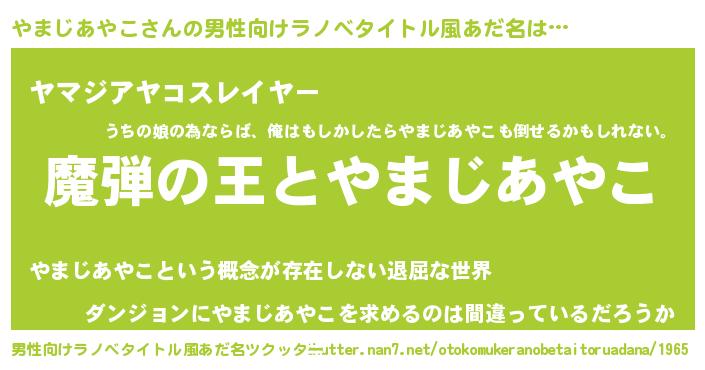 | 女子向けラノベタイトル風あだ名 | 『やまじあやこが死なない童話 林檎のやまじあやこの診療簿』 |