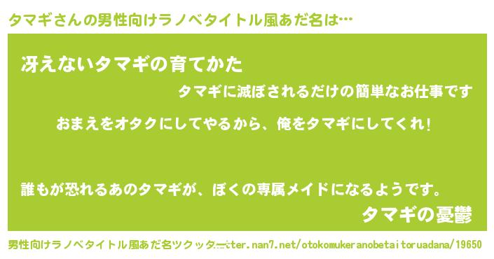 | 女子向けラノベタイトル風あだ名 | 『タマギ夫妻のなれそめ』 |