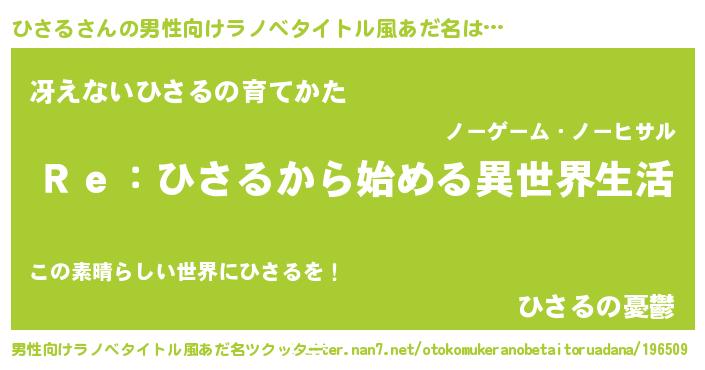 | 女子向けラノベタイトル風あだ名 | 『ひさるストレイドッグス』 |