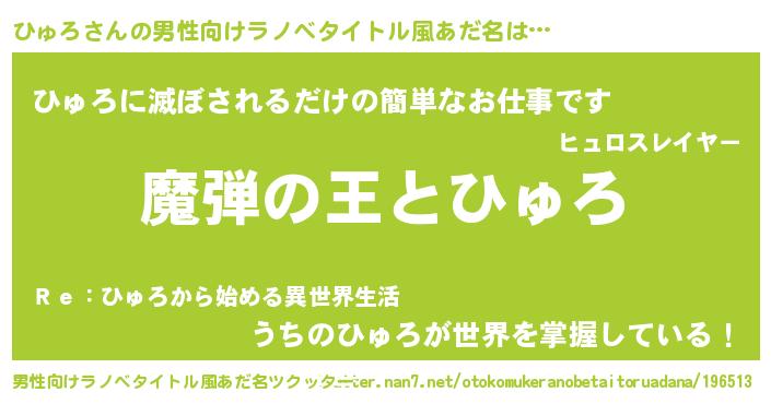 ひゅろさんの男性向けラノベタイトル風あだ名をツクッター!