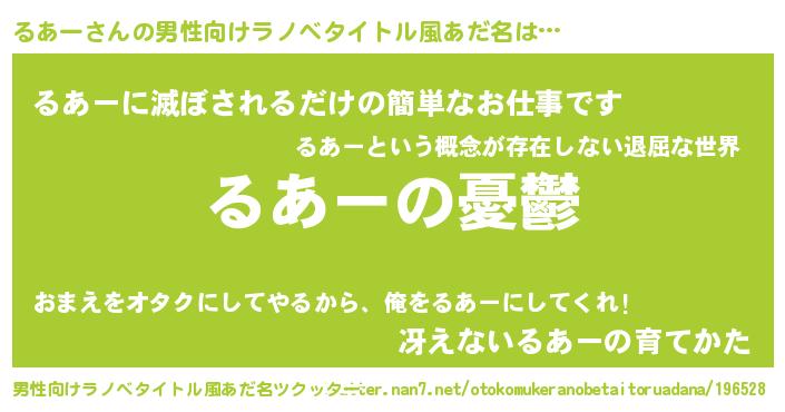 | 胡散臭い通販商品みたいなあだ名 | 『必ず成功する霊験あらたかなお札…その名も「るあー」』 |