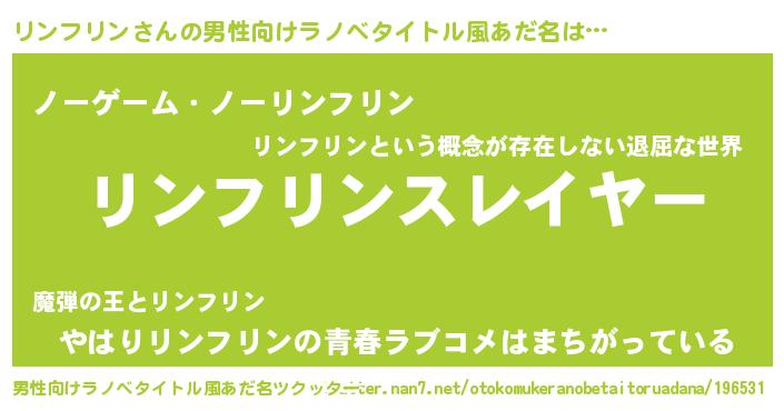 | 自動車の名前っぽいあだ名 | 『リールスンイス』『リンR』『リクア』 |