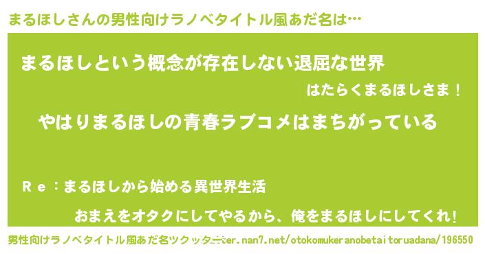 | 女子向けラノベタイトル風あだ名 | 『まるほしの雑貨屋さん』『闇のまるほし』 |