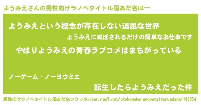 | ファンタジー風あだ名 | 『エターナルヨウミエー』『クインヨット』 |