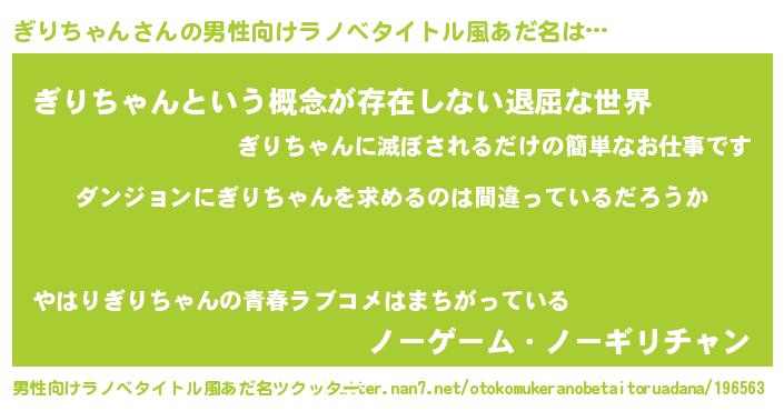 | 女子向けラノベタイトル風あだ名 | 『ぎりちゃんは平凡を望む』 |