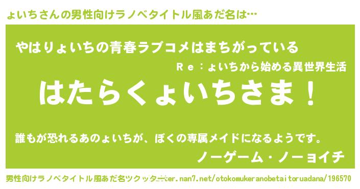 | ヒーロー風カッコイイあだ名 | 『ウルトラょいちマン』『愛の使者ょいち』 |