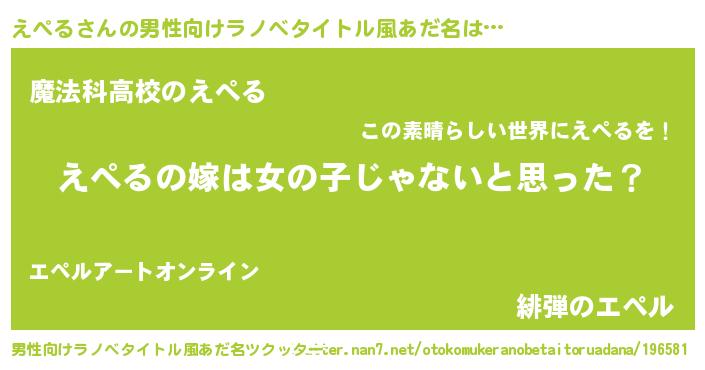 | 意味不明あだ名 | 『とにかく怪しいえぺる』『自称えぺる』 |
