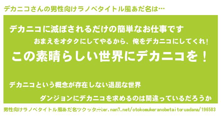 | 意味不明あだ名 | 『住所不定無職デカニコ(68歳)』 |