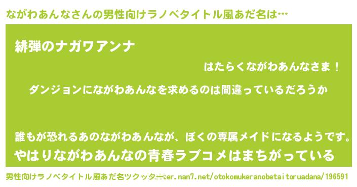 | 胡散臭い通販商品みたいなあだ名 | 『信頼と実績のネックレス…その名も「ながわあんな」』 |