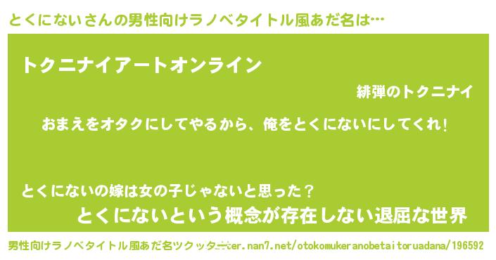 | ヒーロー風カッコイイあだ名 | 『正義の使者とくにない』『炎刃騎士トク』 |