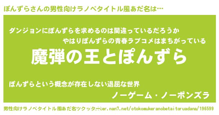 | 意味不明あだ名 | 『住所不定無職ぽんずら(79歳)』 |