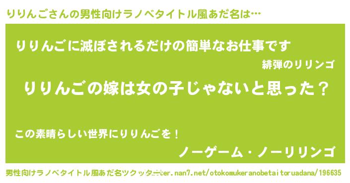 | 女子向けラノベタイトル風あだ名 | 『りりんご様がみてる』『りりんご恋絵巻』 |