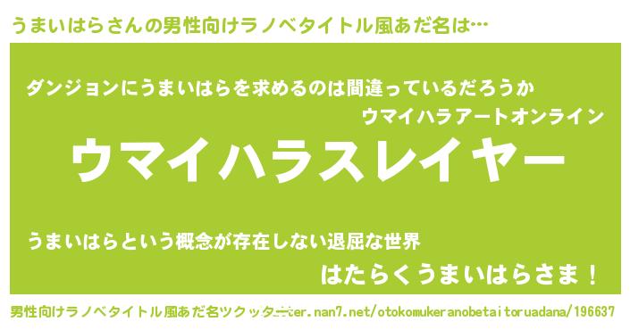 | 料理風あだ名 | 『うまいはらごはん』 |